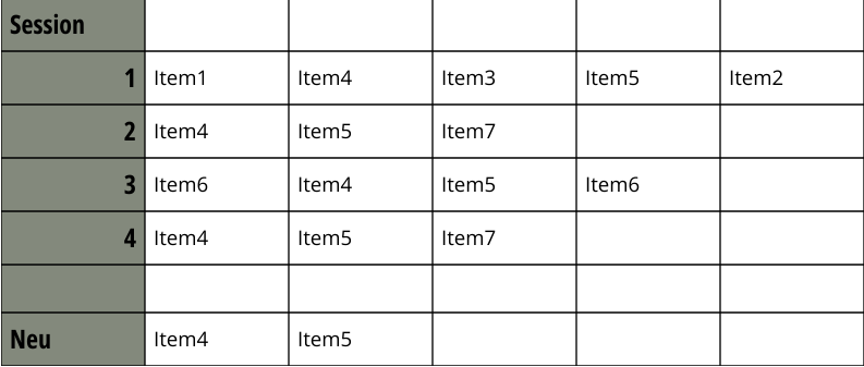 Welches Item wird in folgender Konstellation der Session "Neu" mit Hilfe von Trigrammen empfohlen?